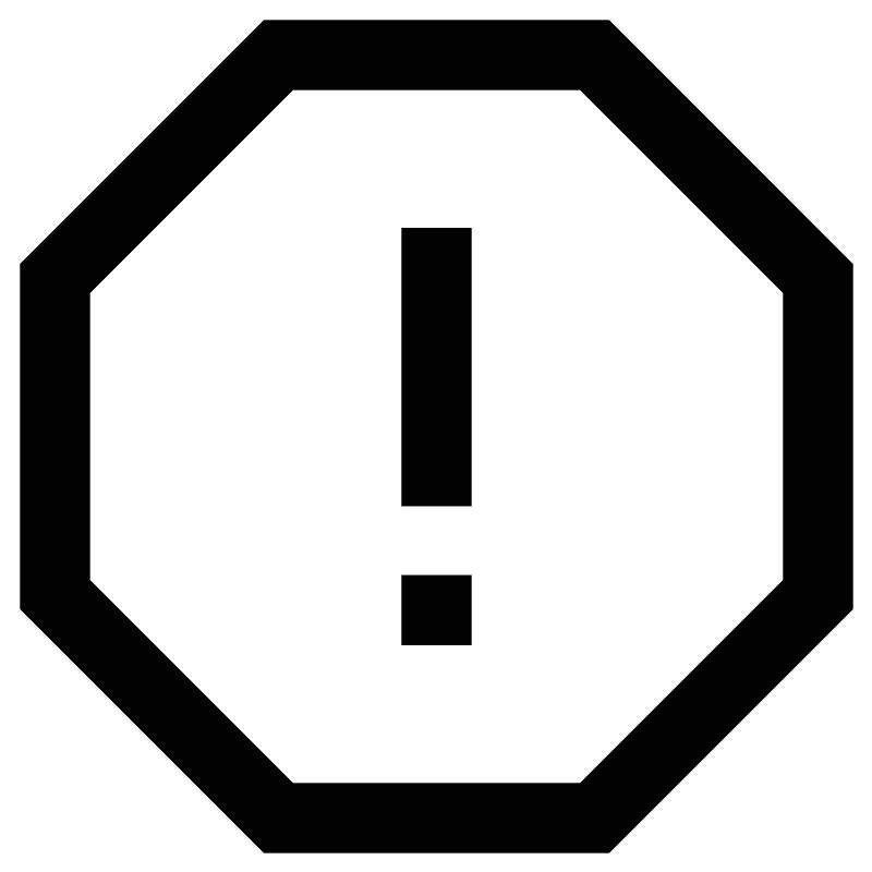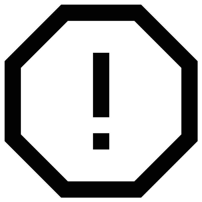 <svg width="800px" height="800px" viewBox="0 0 24 24" id="Layer_1" data-name="Layer 1" xmlns="http://www.w3.org/2000/svg"><defs><style>.cls-1{fill:none;stroke:#020202;stroke-miterlimit:10;stroke-width:1.91px;}</style></defs><polygon class="cls-1" points="16.35 1.5 7.65 1.5 1.5 7.65 1.5 16.35 7.65 22.5 16.35 22.5 22.5 16.35 22.5 7.65 16.35 1.5"/><line class="cls-1" x1="12" y1="6.27" x2="12" y2="13.91"/><line class="cls-1" x1="12" y1="15.82" x2="12" y2="17.73"/></svg>