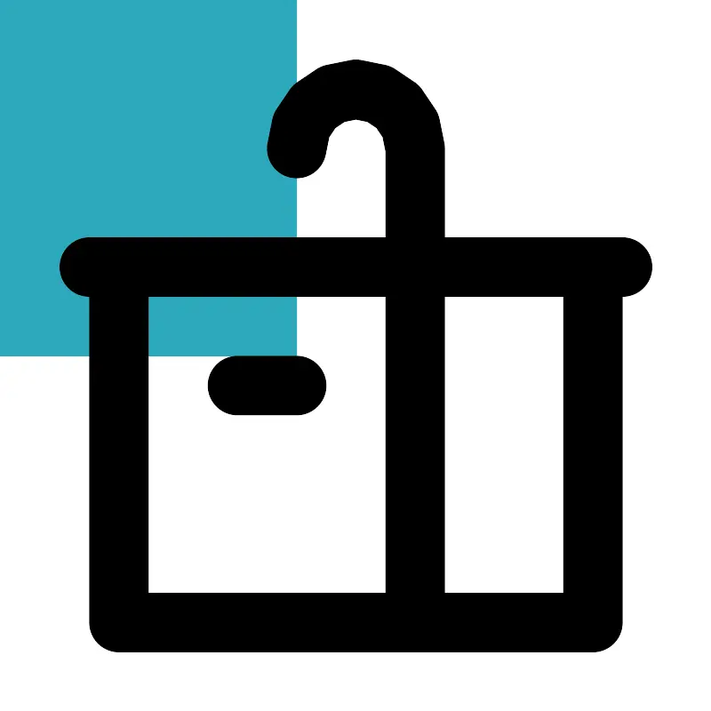 <svg fill="#000000" width="800px" height="800px" viewBox="0 0 24 24" id="washbasin-3" data-name="Flat Line" xmlns="http://www.w3.org/2000/svg" class="icon flat-line"><rect id="secondary" x="4" y="9" width="10" height="12" transform="translate(18 30) rotate(180)" style="fill: rgb(44, 169, 188); stroke-width: 2;"></rect><path id="primary" d="M10,5h0a2,2,0,0,1,2-2h0a2,2,0,0,1,2,2V9" style="fill: none; stroke: rgb(0, 0, 0); stroke-linecap: round; stroke-linejoin: round; stroke-width: 2;"></path><path id="primary-2" data-name="primary" d="M10,13H8M20,9H4V21H20ZM3,9H21M20,9H14V21h6Z" style="fill: none; stroke: rgb(0, 0, 0); stroke-linecap: round; stroke-linejoin: round; stroke-width: 2;"></path></svg>