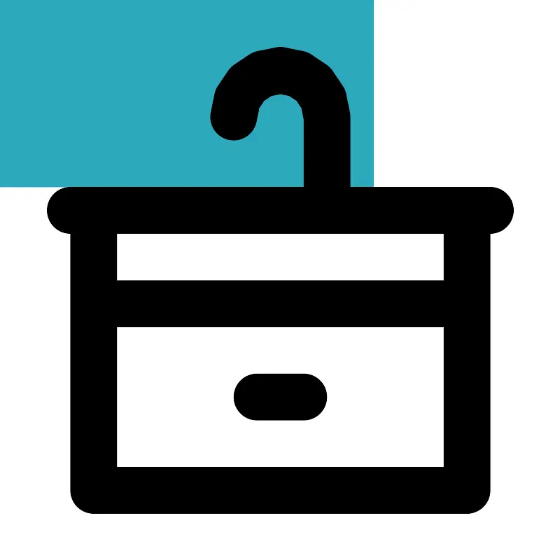 <svg fill="#000000" width="800px" height="800px" viewBox="0 0 24 24" id="washbasin" data-name="Flat Line" xmlns="http://www.w3.org/2000/svg" class="icon flat-line"><rect id="secondary" x="4" y="13" width="16" height="8" transform="translate(24 34) rotate(180)" style="fill: rgb(44, 169, 188); stroke-width: 2;"></rect><path id="primary" d="M10,5h0a2,2,0,0,1,2-2h0a2,2,0,0,1,2,2V9" style="fill: none; stroke: rgb(0, 0, 0); stroke-linecap: round; stroke-linejoin: round; stroke-width: 2;"></path><path id="primary-2" data-name="primary" d="M13,17H11M4,21H20V13H4ZM3,9H21M4,13H20V9H4Z" style="fill: none; stroke: rgb(0, 0, 0); stroke-linecap: round; stroke-linejoin: round; stroke-width: 2;"></path></svg>