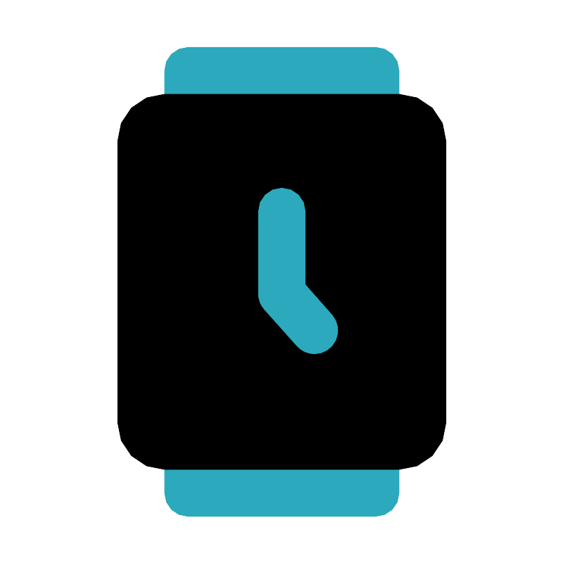<svg fill="#000000" width="800px" height="800px" viewBox="0 0 24 24" id="watch-5-o-clock" data-name="Flat Color" xmlns="http://www.w3.org/2000/svg" class="icon flat-color"><path id="secondary" d="M17,3V5a1,1,0,0,1-1,1H8A1,1,0,0,1,7,5V3A1,1,0,0,1,8,2h8A1,1,0,0,1,17,3ZM16,18H8a1,1,0,0,0-1,1v2a1,1,0,0,0,1,1h8a1,1,0,0,0,1-1V19A1,1,0,0,0,16,18Z" style="fill: rgb(44, 169, 188);"></path><rect id="primary" x="5" y="4" width="14" height="16" rx="2" style="fill: rgb(0, 0, 0);"></rect><path id="secondary-2" data-name="secondary" d="M14.14,13.41,13,12.12V9a1,1,0,0,0-2,0v3.5a1,1,0,0,0,.25.67l1.4,1.57a1,1,0,0,0,.75.33,1,1,0,0,0,.74-1.66Z" style="fill: rgb(44, 169, 188);"></path></svg>