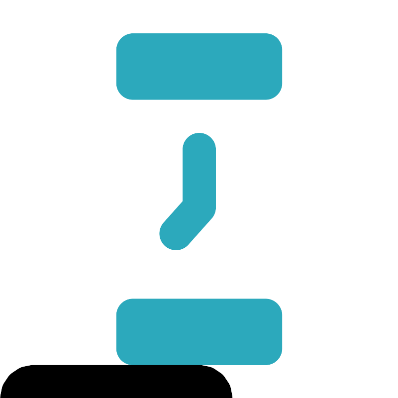 <svg fill="#000000" width="800px" height="800px" viewBox="0 0 24 24" id="watch-7-o-clock" data-name="Line Color" xmlns="http://www.w3.org/2000/svg" class="icon line-color"><path id="secondary" d="M16,3V5H8V3Zm0,18V19H8v2Z" style="fill: none; stroke: rgb(44, 169, 188); stroke-linecap: round; stroke-linejoin: round; stroke-width: 2;"></path><polyline id="secondary-2" data-name="secondary" points="10.6 14.07 12 12.5 12 9" style="fill: none; stroke: rgb(44, 169, 188); stroke-linecap: round; stroke-linejoin: round; stroke-width: 2;"></polyline><rect id="primary" x="5" y="6" width="14" height="12" rx="1" transform="translate(24) rotate(90)" style="fill: none; stroke: rgb(0, 0, 0); stroke-linecap: round; stroke-linejoin: round; stroke-width: 2;"></rect></svg>