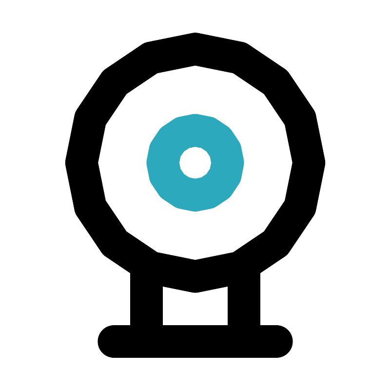 <svg fill="#000000" width="800px" height="800px" viewBox="0 0 24 24" id="webcam-2" data-name="Line Color" xmlns="http://www.w3.org/2000/svg" class="icon line-color"><circle id="secondary" cx="12" cy="10" r="2" style="fill: none; stroke: rgb(44, 169, 188); stroke-linecap: round; stroke-linejoin: round; stroke-width: 2;"></circle><line id="primary" x1="9" y1="21" x2="9" y2="16.45" style="fill: none; stroke: rgb(0, 0, 0); stroke-linecap: round; stroke-linejoin: round; stroke-width: 2;"></line><line id="primary-2" data-name="primary" x1="15" y1="16.36" x2="15" y2="21" style="fill: none; stroke: rgb(0, 0, 0); stroke-linecap: round; stroke-linejoin: round; stroke-width: 2;"></line><path id="primary-3" data-name="primary" d="M17,21H7M19,10a7,7,0,1,0-7,7A7,7,0,0,0,19,10Z" style="fill: none; stroke: rgb(0, 0, 0); stroke-linecap: round; stroke-linejoin: round; stroke-width: 2;"></path></svg>