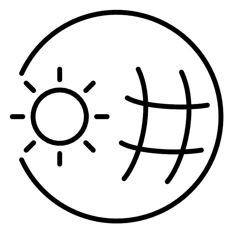 <svg width="800px" height="800px" viewBox="0 0 48 48" xmlns="http://www.w3.org/2000/svg"><defs><style>.a{fill:none;stroke:#000000;stroke-linecap:round;stroke-linejoin:round;}</style></defs><path class="a" d="M4.4259,15.0932a21.5,21.5,0,1,1-.0007,17.812"/><path class="a" d="M28.4488,14.2308c3.4205,7.1028.6168,18.2243-2.9159,22.5421"/><path class="a" d="M37.355,14.8481c3.4206,7.1028.6168,18.2243-2.9159,22.542"/><path class="a" d="M26.1961,20.145c2.972,1.7611,11.5514,2.3177,16.486,1.4953"/><path class="a" d="M24.9622,29.404c2.9719,1.7611,11.5514,2.3178,16.4859,1.4953"/><circle class="a" cx="12.2692" cy="24" r="5.5"/><line class="a" x1="12.2692" y1="16.3925" x2="12.2692" y2="14.2308"/><line class="a" x1="17.6485" y1="18.6207" x2="19.1771" y2="17.0921"/><line class="a" x1="19.8767" y1="24" x2="22.0384" y2="24"/><line class="a" x1="17.6485" y1="29.3793" x2="19.1771" y2="30.9079"/><line class="a" x1="12.2692" y1="31.6075" x2="12.2692" y2="33.7692"/><line class="a" x1="6.8899" y1="29.3793" x2="5.3613" y2="30.9079"/><line class="a" x1="4.6617" y1="24" x2="2.5" y2="24"/><line class="a" x1="6.8899" y1="18.6207" x2="5.3613" y2="17.0921"/></svg>