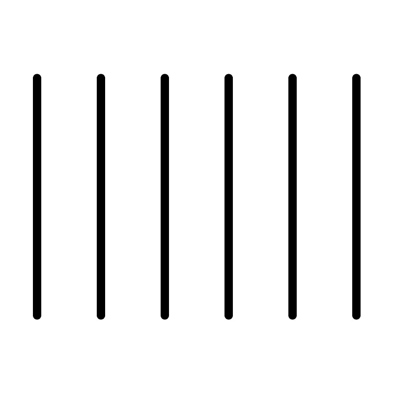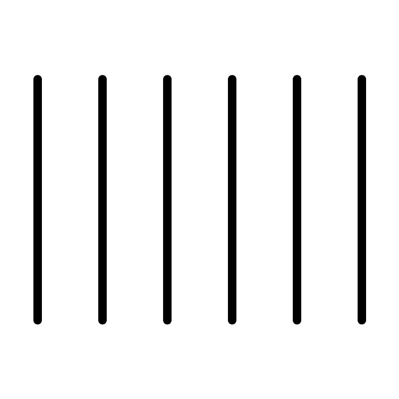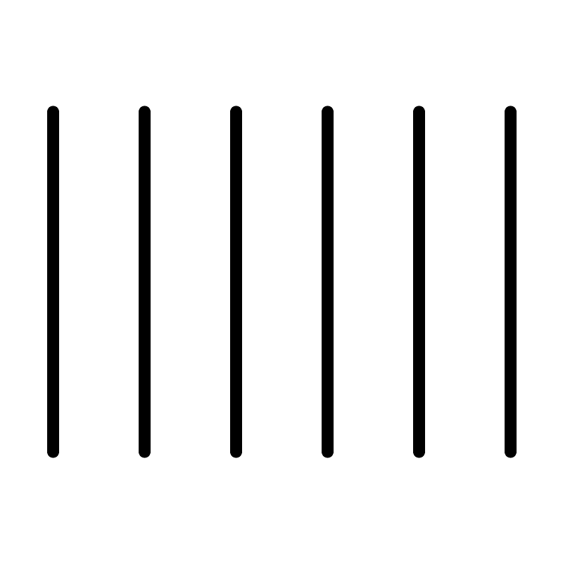 <svg width="800px" height="800px" viewBox="0 0 48 48" xmlns="http://www.w3.org/2000/svg"><defs><style>.a{fill:none;stroke:#000000;stroke-linecap:round;stroke-linejoin:round;}</style></defs><line class="a" x1="4.5" y1="9.5" x2="4.5" y2="38.5"/><line class="a" x1="43.5" y1="9.5" x2="43.5" y2="38.5"/><line class="a" x1="35.7" y1="9.5" x2="35.7" y2="38.5"/><line class="a" x1="27.9" y1="9.5" x2="27.9" y2="38.5"/><line class="a" x1="20.1" y1="9.5" x2="20.1" y2="38.5"/><line class="a" x1="12.3" y1="9.5" x2="12.3" y2="38.5"/></svg>