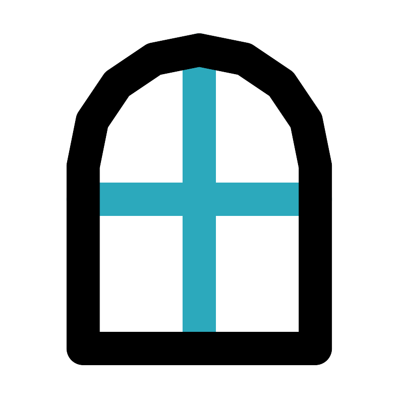 <svg fill="#000000" width="800px" height="800px" viewBox="0 0 24 24" id="window-4" data-name="Line Color" xmlns="http://www.w3.org/2000/svg" class="icon line-color"><path id="secondary" d="M12,3V21m7-9H5" style="fill: none; stroke: rgb(44, 169, 188); stroke-linecap: round; stroke-linejoin: round; stroke-width: 2;"></path><path id="primary" d="M12,3h0a7,7,0,0,1,7,7V21a0,0,0,0,1,0,0H5a0,0,0,0,1,0,0V10A7,7,0,0,1,12,3Z" style="fill: none; stroke: rgb(0, 0, 0); stroke-linecap: round; stroke-linejoin: round; stroke-width: 2;"></path></svg>