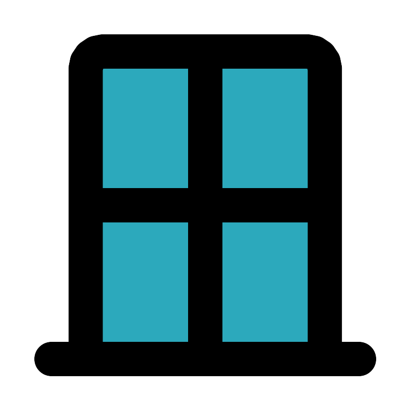 <svg fill="#000000" width="800px" height="800px" viewBox="0 0 24 24" id="window" data-name="Flat Line" xmlns="http://www.w3.org/2000/svg" class="icon flat-line"><path id="secondary" d="M6,3H18a1,1,0,0,1,1,1V21a0,0,0,0,1,0,0H5a0,0,0,0,1,0,0V4A1,1,0,0,1,6,3Z" style="fill: rgb(44, 169, 188); stroke-width: 2;"></path><path id="primary" d="M12,3V21m7-9H5M3,21H21m-2,0H5V4A1,1,0,0,1,6,3H18a1,1,0,0,1,1,1Z" style="fill: none; stroke: rgb(0, 0, 0); stroke-linecap: round; stroke-linejoin: round; stroke-width: 2;"></path></svg>