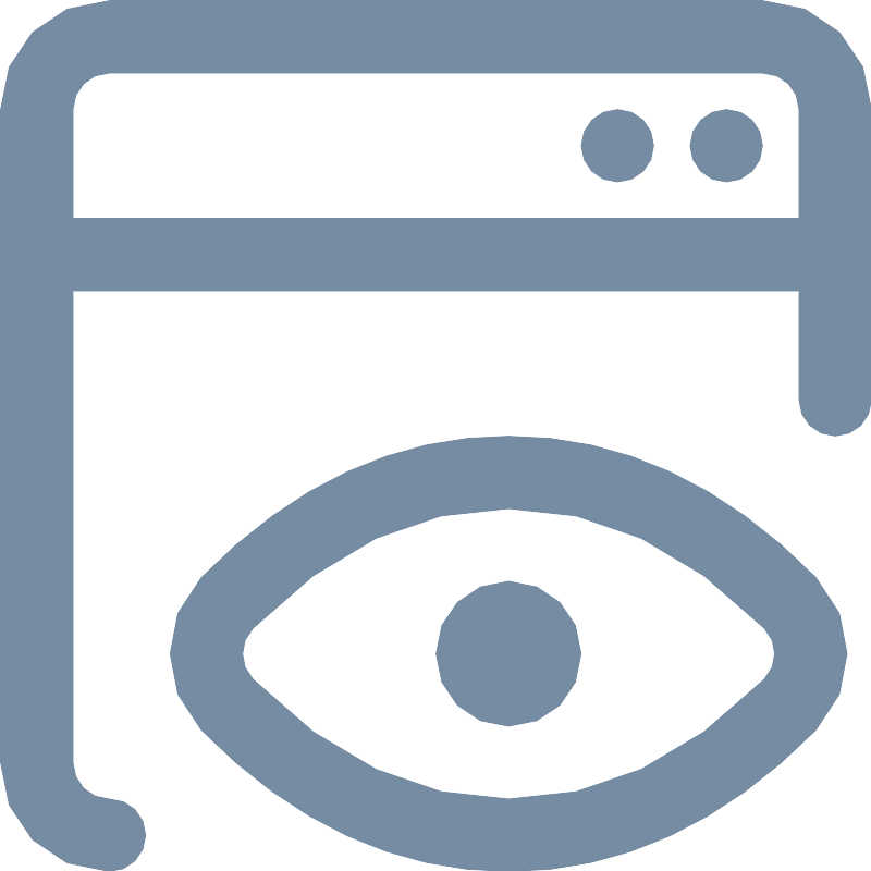 <svg width="800px" height="800px" viewBox="0 0 24 24" id="meteor-icon-kit__regular-window-eye" fill="none" xmlns="http://www.w3.org/2000/svg"><path fill-rule="evenodd" clip-rule="evenodd" d="M22 8H2V21C2 21.5523 2.44772 22 3 22C3.55228 22 4 22.4477 4 23C4 23.5523 3.55228 24 3 24C1.34315 24 0 22.6569 0 21V3C0 1.34315 1.34315 0 3 0H21C22.6569 0 24 1.34315 24 3V11C24 11.5523 23.5523 12 23 12C22.4477 12 22 11.5523 22 11V8ZM22 6V3C22 2.44772 21.5523 2 21 2H3C2.44772 2 2 2.44772 2 3V6H22ZM17 3C17.5523 3 18 3.44772 18 4C18 4.55228 17.5523 5 17 5C16.4477 5 16 4.55228 16 4C16 3.44772 16.4477 3 17 3ZM20 3C20.5523 3 21 3.44772 21 4C21 4.55228 20.5523 5 20 5C19.4477 5 19 4.55228 19 4C19 3.44772 19.4477 3 20 3ZM14 24C10.9065 24 8.07075 22.6846 5.53197 20.1039C4.38344 18.9364 4.38344 17.0636 5.53198 15.8961C8.07076 13.3154 10.9065 12 14 12C17.0935 12 19.9292 13.3154 22.468 15.8961C23.6166 17.0636 23.6166 18.9364 22.468 20.1039C19.9292 22.6846 17.0935 24 14 24ZM14 22C16.5281 22 18.8624 20.9172 21.0423 18.7013C21.4251 18.3121 21.4251 17.6879 21.0423 17.2987C18.8624 15.0828 16.5281 14 14 14C11.4719 14 9.13762 15.0828 6.95771 17.2987C6.57486 17.6879 6.57486 18.3121 6.95771 18.7013C9.13762 20.9172 11.4719 22 14 22ZM14 20C12.8954 20 12 19.1046 12 18C12 16.8954 12.8954 16 14 16C15.1046 16 16 16.8954 16 18C16 19.1046 15.1046 20 14 20Z" fill="#758CA3"/></svg>