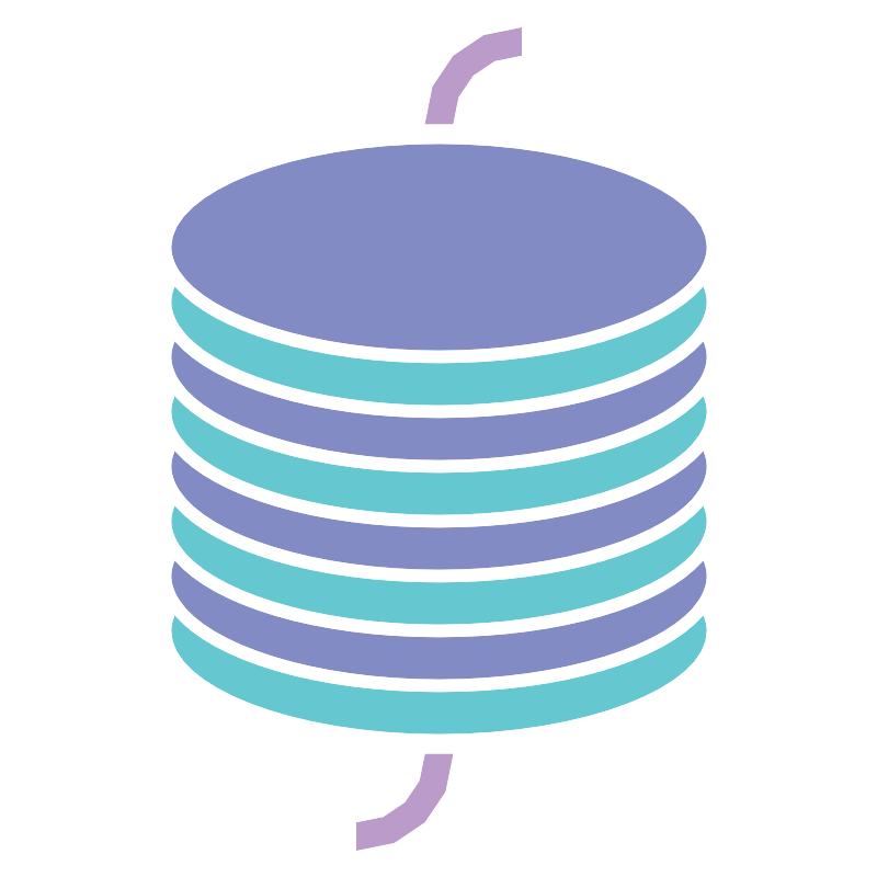 <svg width="800px" height="800px" viewBox="0 0 64 64" data-name="Layer 1" id="Layer_1" xmlns="http://www.w3.org/2000/svg"><defs><style>.cls-1{fill:#ba9bc9;}.cls-2{fill:#65c8d0;}.cls-3{fill:#838bc5;}</style></defs><path class="cls-1" d="M33,9H31a7,7,0,0,1,7-7V4A5,5,0,0,0,33,9Z"/><path class="cls-1" d="M26,62V60a5,5,0,0,0,5-5h2A7,7,0,0,1,26,62Z"/><path class="cls-2" d="M32,42.5c-9,0-16.44-2.29-19.27-5.57A2.83,2.83,0,0,0,12.5,38a3.3,3.3,0,0,0,.08.61,3.65,3.65,0,0,0,.5,1.12h0C15.19,43,23,45.5,32,45.5S48.81,43,50.92,39.74h0a3.65,3.65,0,0,0,.5-1.12A3.3,3.3,0,0,0,51.5,38a2.83,2.83,0,0,0-.23-1.07C48.44,40.21,41,42.5,32,42.5Z"/><path class="cls-2" d="M32,34.5c-9,0-16.44-2.29-19.27-5.57A2.83,2.83,0,0,0,12.5,30a3.3,3.3,0,0,0,.08.61,3.65,3.65,0,0,0,.5,1.12h0C15.19,35,23,37.5,32,37.5S48.81,35,50.92,31.74h0a3.65,3.65,0,0,0,.5-1.12A3.3,3.3,0,0,0,51.5,30a2.83,2.83,0,0,0-.23-1.07C48.44,32.21,41,34.5,32,34.5Z"/><path class="cls-3" d="M32,38.5c-9,0-16.44-2.29-19.27-5.57A2.83,2.83,0,0,0,12.5,34a3.3,3.3,0,0,0,.08.61,3.65,3.65,0,0,0,.5,1.12h0C15.19,39,23,41.5,32,41.5S48.81,39,50.92,35.74h0a3.65,3.65,0,0,0,.5-1.12A3.3,3.3,0,0,0,51.5,34a2.83,2.83,0,0,0-.23-1.07C48.44,36.21,41,38.5,32,38.5Z"/><path class="cls-3" d="M32,46.5c-9,0-16.44-2.29-19.27-5.57A2.83,2.83,0,0,0,12.5,42a3.3,3.3,0,0,0,.08.61,3.65,3.65,0,0,0,.5,1.12h0C15.19,47,23,49.5,32,49.5S48.81,47,50.92,43.74h0a3.65,3.65,0,0,0,.5-1.12A3.3,3.3,0,0,0,51.5,42a2.83,2.83,0,0,0-.23-1.07C48.44,44.21,41,46.5,32,46.5Z"/><path class="cls-2" d="M32,50.5c-9,0-16.44-2.29-19.27-5.57A2.83,2.83,0,0,0,12.5,46c0,4.07,8.93,7.5,19.5,7.5S51.5,50.07,51.5,46a2.83,2.83,0,0,0-.23-1.07C48.44,48.21,41,50.5,32,50.5Z"/><path class="cls-3" d="M32,30.5c-9,0-16.44-2.29-19.27-5.57A2.83,2.83,0,0,0,12.5,26a3.3,3.3,0,0,0,.08.61,3.65,3.65,0,0,0,.5,1.12h0C15.19,31,23,33.5,32,33.5S48.81,31,50.92,27.74h0a3.65,3.65,0,0,0,.5-1.12A3.3,3.3,0,0,0,51.5,26a2.83,2.83,0,0,0-.23-1.07C48.44,28.21,41,30.5,32,30.5Z"/><path class="cls-3" d="M32,10.5c-10.57,0-19.5,3.43-19.5,7.5a3.3,3.3,0,0,0,.08.61,3.65,3.65,0,0,0,.5,1.12h0C15.19,23,23,25.5,32,25.5S48.81,23,50.92,19.74h0a3.65,3.65,0,0,0,.5-1.12A3.3,3.3,0,0,0,51.5,18C51.5,13.93,42.57,10.5,32,10.5Z"/><path class="cls-2" d="M32,26.5c-9,0-16.44-2.29-19.27-5.57A2.83,2.83,0,0,0,12.5,22a3.3,3.3,0,0,0,.08.61,3.65,3.65,0,0,0,.5,1.12h0C15.19,27,23,29.5,32,29.5S48.81,27,50.92,23.74h0a3.65,3.65,0,0,0,.5-1.12A3.3,3.3,0,0,0,51.5,22a2.83,2.83,0,0,0-.23-1.07C48.44,24.21,41,26.5,32,26.5Z"/></svg>