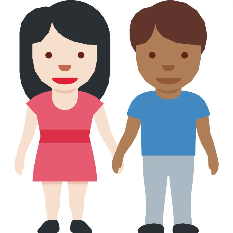 Женщина и мужчина держатся за руки (светлокожие, среднетемнокожие)