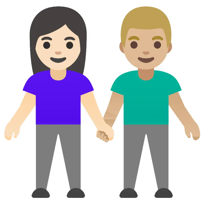 Женщина и мужчина держатся за руки светлая кожа medium light skin tone