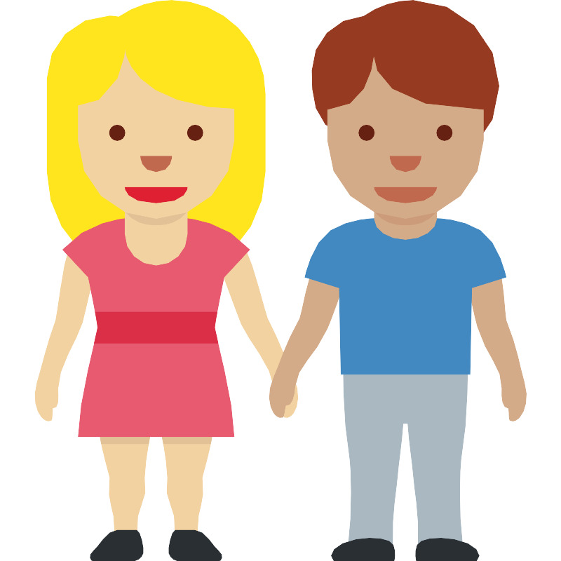 Женщина и мужчина держатся за руки, светлокожие и среднетемнокожие