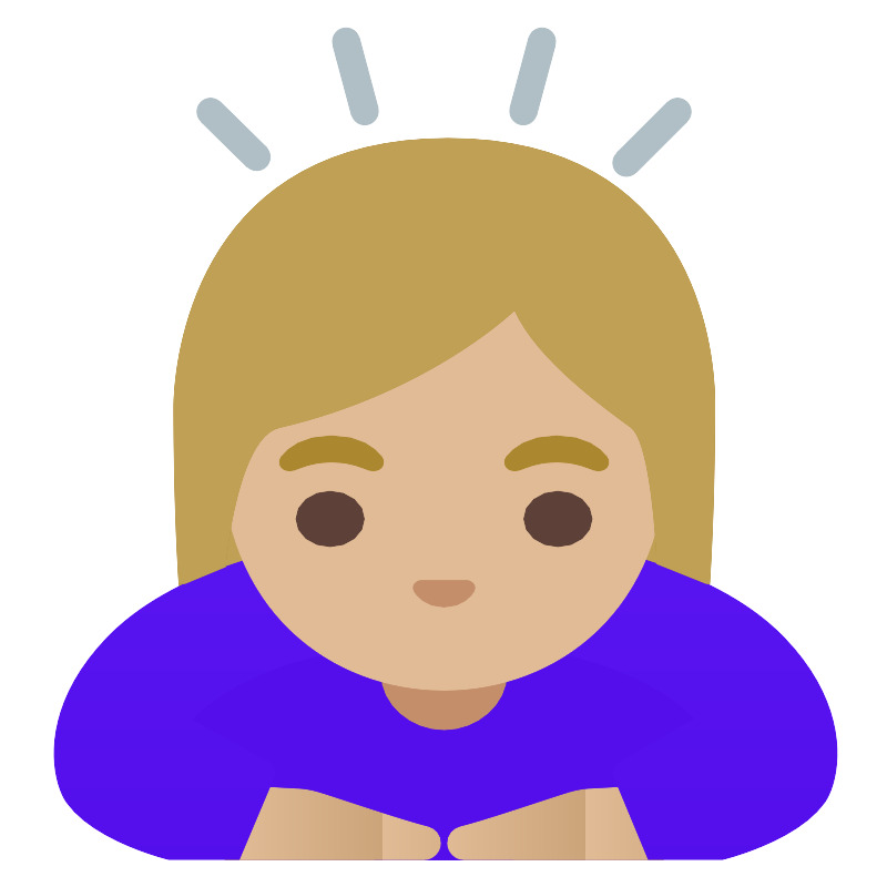 Женщина с средним светлым тоном кожи кланяется
