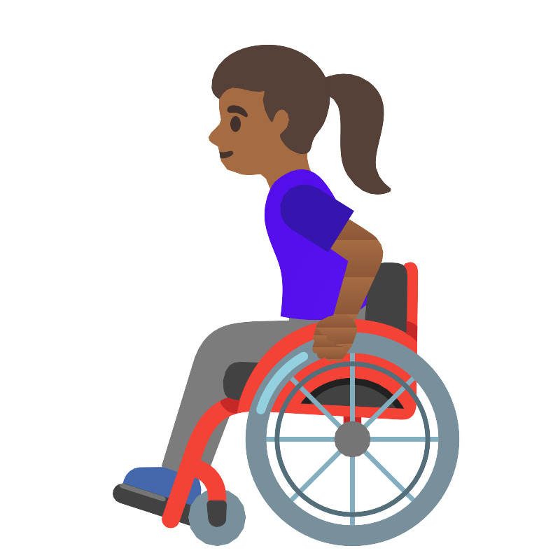 Женщина на инвалидной коляске с тёмной кожей среднего тона