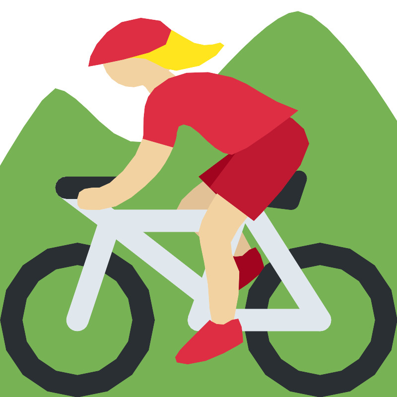 Женщина со средним светлым тоном кожи и средними светлыми волосами на горных велосипедах