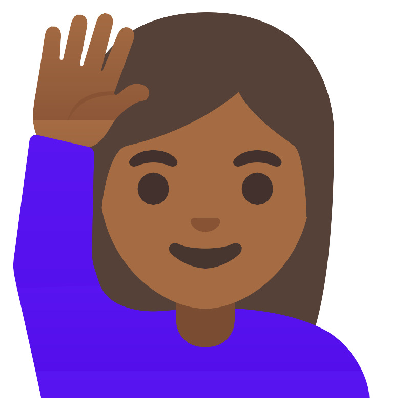 Женщина с поднятой рукой средне-темная кожа