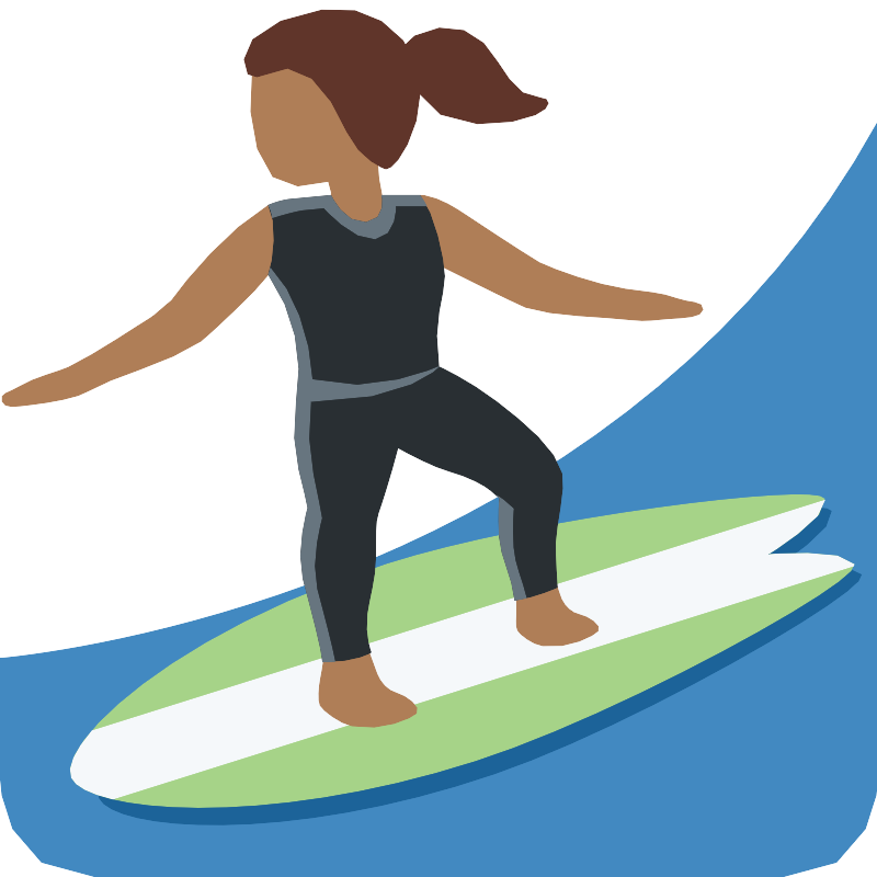 Woman surfing medium dark skin tone