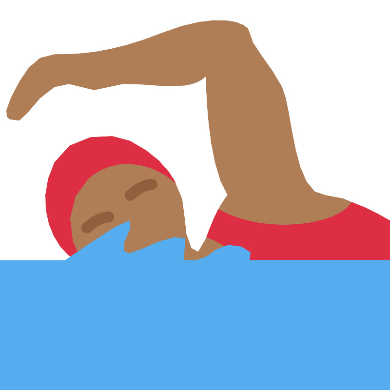 Woman swimming medium dark skin tone