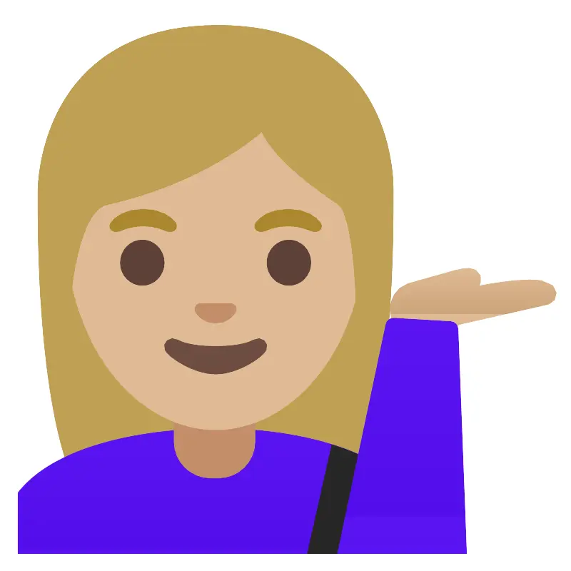 Женщина со средним светлым оттенком кожи, показывает знак