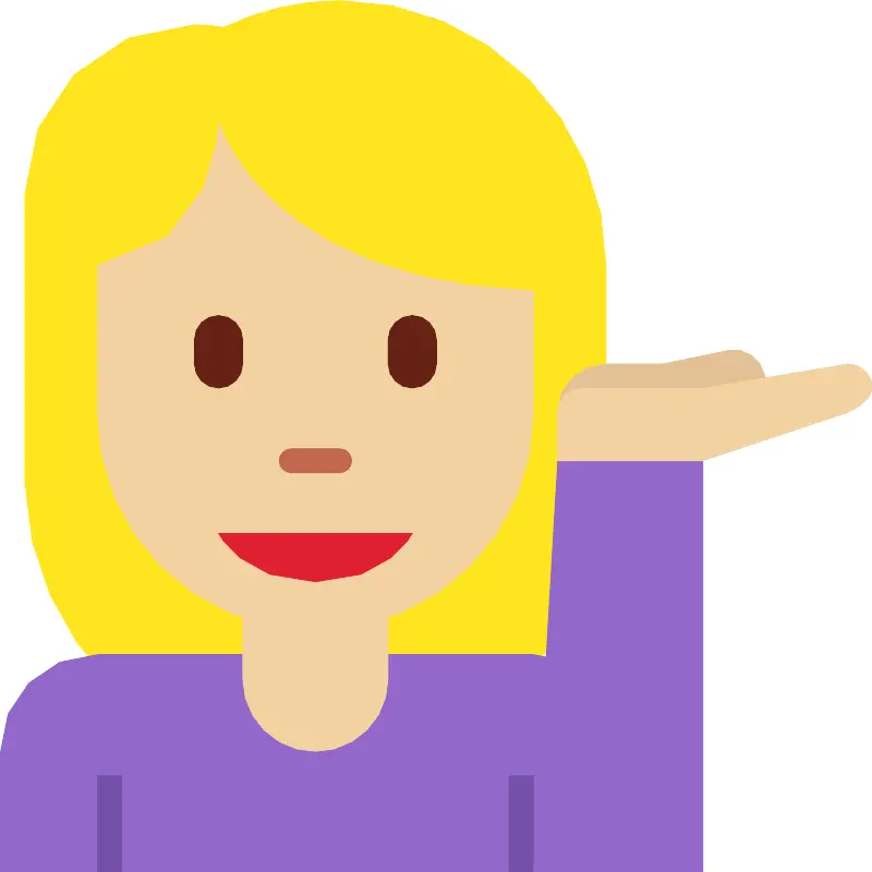 Женщина с средним светлым тоном кожи указывает рукой