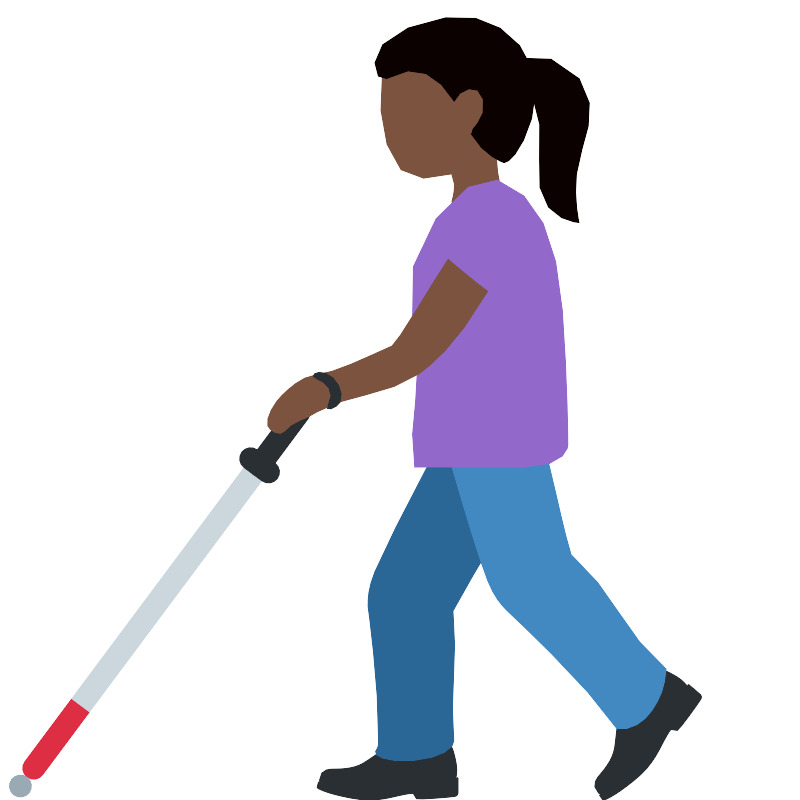 Женщина с белой тростью, тёмный тон кожи