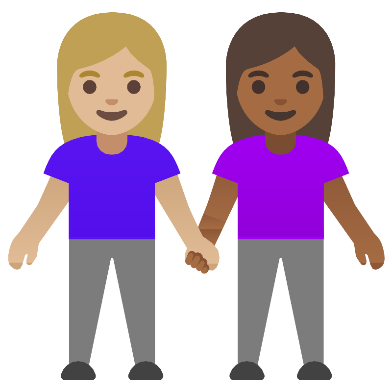 Женщины держатся за руки средняя светлая кожа средняя темная кожа