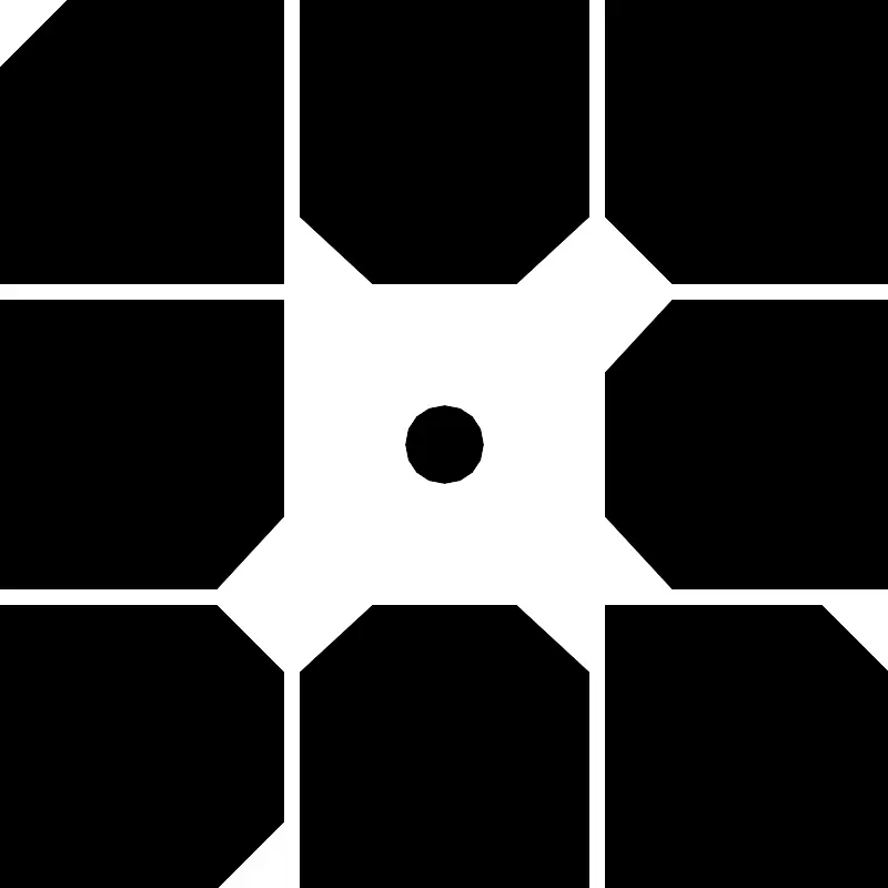 <svg fill="#000000" width="800px" height="800px" viewBox="0 0 24 24" role="img" xmlns="http://www.w3.org/2000/svg"><title>WP Engine icon</title><path d="M8.1 24h7.8v-5.85l-1.95-1.801h-3.9L8.1 18.15V24zM18.15 8.1l-1.801 1.95v3.9l1.801 1.95H24V8.1h-5.85zM15.9 0H8.1v5.85l1.95 1.801h3.9L15.9 5.85V0zM24 24v-5.85l-1.801-1.801h-5.85V24H24zM1.8 0L0 1.8v5.85h7.65V0H1.8zm14.55 0v5.85l1.8 1.8H24V0h-7.65zM12 13.05c-.6 0-1.05-.45-1.05-1.05s.45-1.05 1.05-1.05 1.05.45 1.05 1.05-.45 1.05-1.05 1.05m-4.35 5.1l-1.8-1.8H0V24h5.85l1.801-1.801V18.15zm0-10.05H0v7.8h5.85l1.801-1.95V8.1z"/></svg>