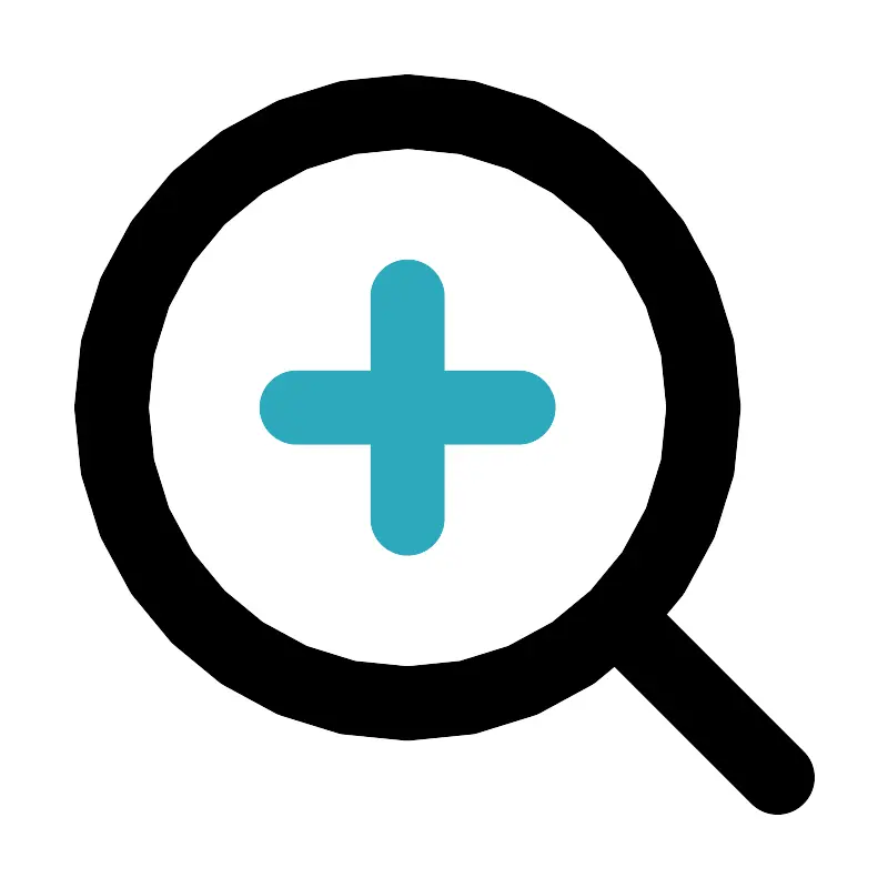 <svg fill="#000000" width="800px" height="800px" viewBox="0 0 24 24" id="zoom-in-alt" data-name="Line Color" xmlns="http://www.w3.org/2000/svg" class="icon line-color"><path id="secondary" d="M11,14V8M8,11h6" style="fill: none; stroke: rgb(44, 169, 188); stroke-linecap: round; stroke-linejoin: round; stroke-width: 2;"></path><path id="primary" d="M21,21l-4.34-4.34M19,11a8,8,0,1,1-8-8A8,8,0,0,1,19,11Z" style="fill: none; stroke: rgb(0, 0, 0); stroke-linecap: round; stroke-linejoin: round; stroke-width: 2;"></path></svg>