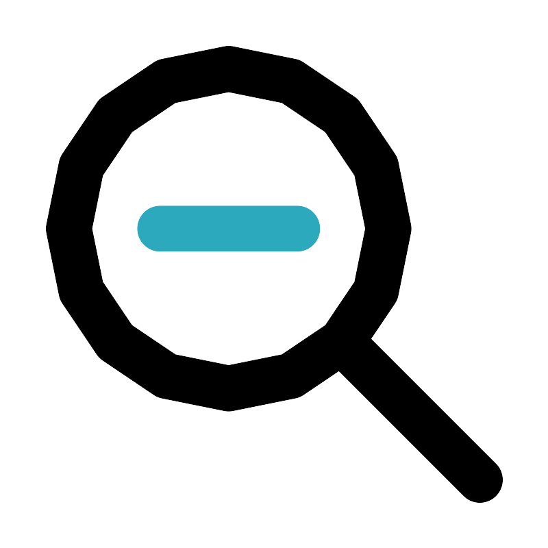 <svg fill="#000000" width="800px" height="800px" viewBox="0 0 24 24" id="zoom-out" data-name="Line Color" xmlns="http://www.w3.org/2000/svg" class="icon line-color"><line id="secondary" x1="7" y1="10" x2="13" y2="10" style="fill: none; stroke: rgb(44, 169, 188); stroke-linecap: round; stroke-linejoin: round; stroke-width: 2;"></line><path id="primary" d="M17,10a7,7,0,1,1-7-7A7,7,0,0,1,17,10Zm4,11-6-6" style="fill: none; stroke: rgb(0, 0, 0); stroke-linecap: round; stroke-linejoin: round; stroke-width: 2;"></path></svg>