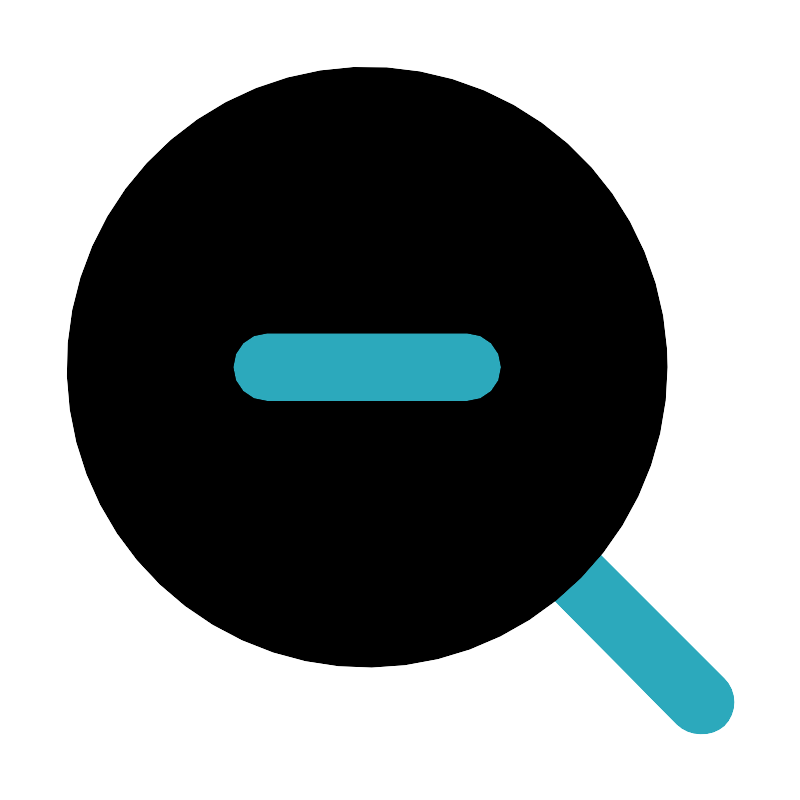 <svg fill="#000000" width="800px" height="800px" viewBox="0 0 24 24" id="zoom-out-alt" data-name="Flat Color" xmlns="http://www.w3.org/2000/svg" class="icon flat-color"><path id="secondary" d="M21,22a1,1,0,0,1-.71-.29L16,17.37A1,1,0,0,1,17.37,16l4.34,4.34a1,1,0,0,1,0,1.42A1,1,0,0,1,21,22Z" style="fill: rgb(44, 169, 188);"></path><circle id="primary" cx="11" cy="11" r="9" style="fill: rgb(0, 0, 0);"></circle><path id="secondary-2" data-name="secondary" d="M14,12H8a1,1,0,0,1,0-2h6a1,1,0,0,1,0,2Z" style="fill: rgb(44, 169, 188);"></path></svg>