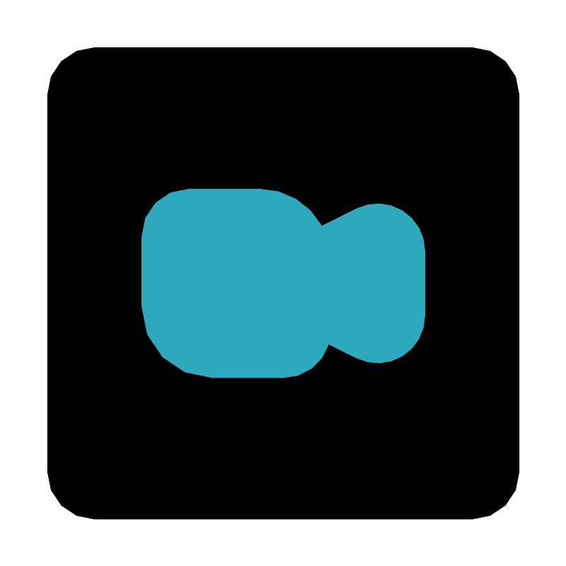 <svg fill="#000000" width="800px" height="800px" viewBox="0 0 24 24" id="zoom-square" data-name="Flat Color" xmlns="http://www.w3.org/2000/svg" class="icon flat-color"><rect id="primary" x="2" y="2" width="20" height="20" rx="2" style="fill: rgb(0, 0, 0);"></rect><path id="secondary" d="M17.05,8.92a2,2,0,0,0-1.94-.09l-1.48.74A3,3,0,0,0,11,8H8a2,2,0,0,0-2,2v3a3,3,0,0,0,3,3h3a2,2,0,0,0,1.92-1.42l1.19.59A2,2,0,0,0,18,13.38V10.62A2,2,0,0,0,17.05,8.92Z" style="fill: rgb(44, 169, 188);"></path></svg>
