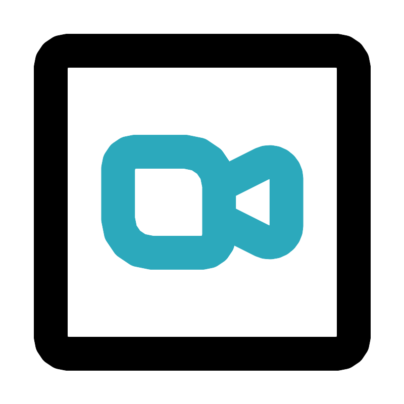 <svg fill="#000000" width="800px" height="800px" viewBox="0 0 24 24" id="zoom-square" data-name="Line Color" xmlns="http://www.w3.org/2000/svg" class="icon line-color"><path id="secondary" d="M13,14V11a2,2,0,0,0-2-2H8a1,1,0,0,0-1,1v3a2,2,0,0,0,2,2h3A1,1,0,0,0,13,14Zm0-1,2.55,1.28a1,1,0,0,0,1.45-.9V10.62a1,1,0,0,0-1.45-.9L13,11Z" style="fill: none; stroke: rgb(44, 169, 188); stroke-linecap: round; stroke-linejoin: round; stroke-width: 2;"></path><rect id="primary" x="3" y="3" width="18" height="18" rx="1" style="fill: none; stroke: rgb(0, 0, 0); stroke-linecap: round; stroke-linejoin: round; stroke-width: 2;"></rect></svg>